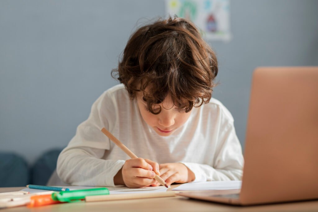 Testes frequentes analisam o desempenho da criança e sugerem melhorias personalizadas no aprendizado.
